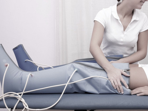 La presoterapia es un sistema de compresión controlada, que funciona con bombas de inflar.  La compresión controlada se realiza introduciendo las extremidades cubriendo las piernas y glúteos  en una especie de botas o cobertores,  en las que con un compresor se insufla aire a presión de forma dosificada.
